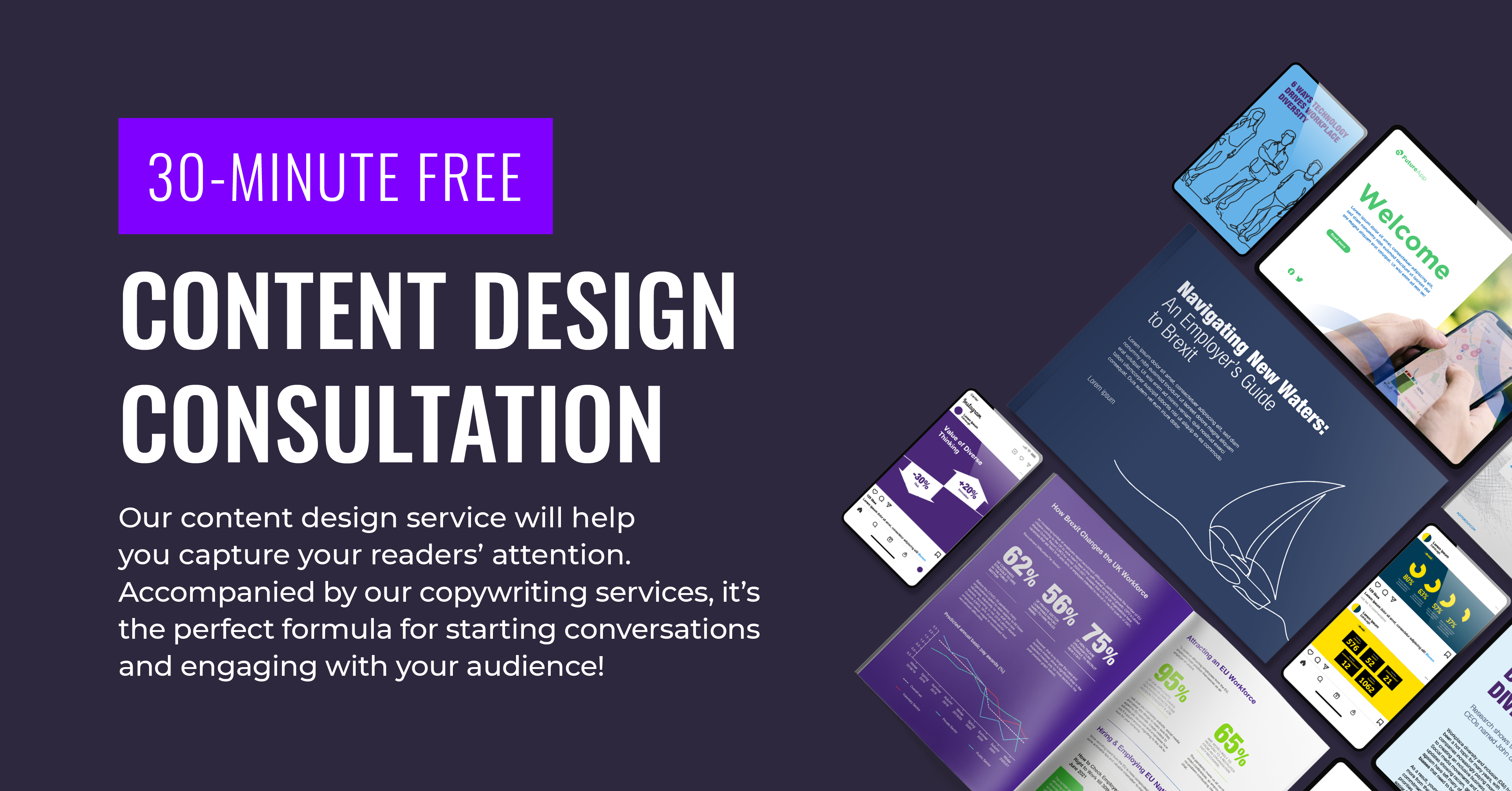 Our content design service will help you capture your readers’ attention. Accompanied by our technology and fintech specialised copywriting services, it’s the perfect formula for starting conversations and engaging with your audience!